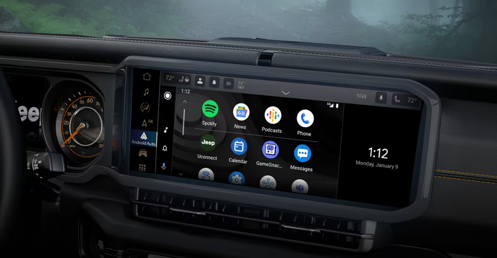 The Jeep Wrangler 4xe Sahara is packed with cutting-edge technology and infotainment features. The centerpiece is the available 12.3-inch touchscreen display, the largest in its class, powered by the intuitive Uconnect® 5 system. This system effortlessly integrates with your smartphone through Apple CarPlay® integration and Android Auto™ compatibility. For added convenience, the Jeep Wrangler 4xe Sahara offers a wireless charging pad and auxiliary switches to customize your driving experience. Remote start and a 7-in. Driver Information Digital Cluster Display further enhance the overall driving experience.
